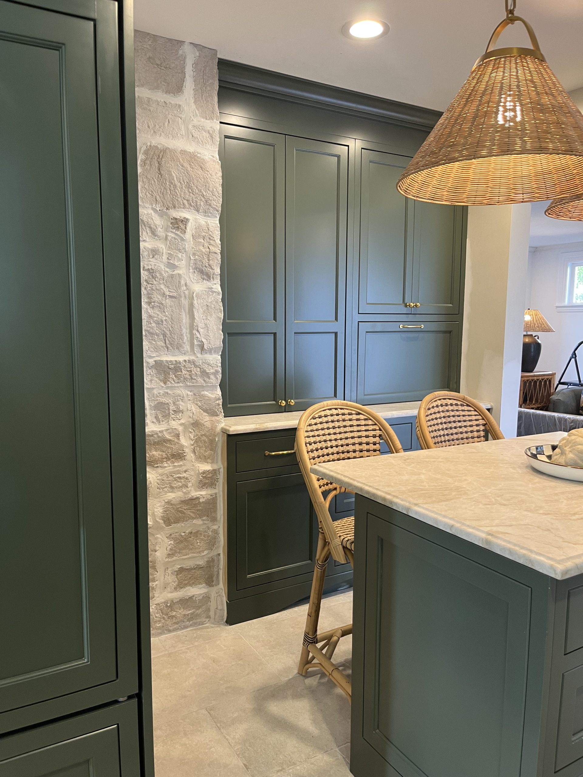 Hillsbrad doors with Misty glaze for a striking kitchen. topped with Fantasy Brown granite/quartzite