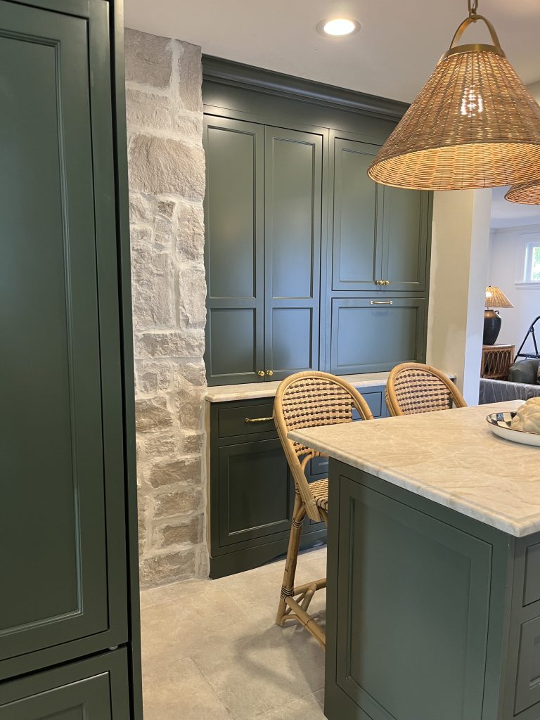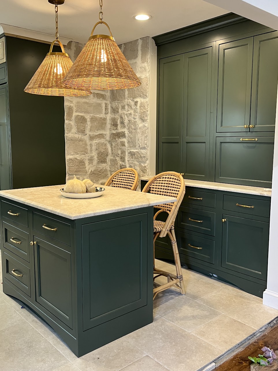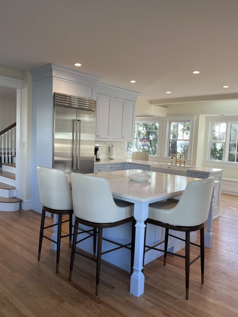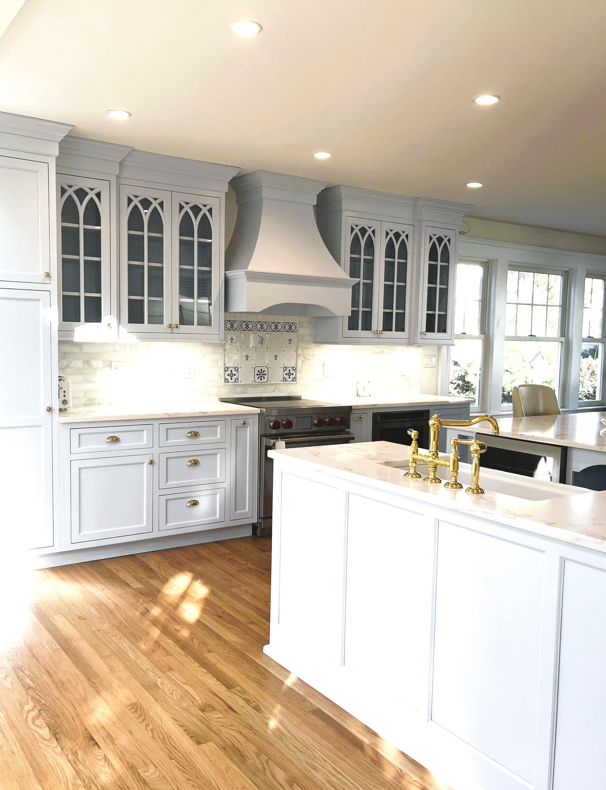 Down to the studs renovation of 1920s classic! We redesigned the kitchen with a new layout , opened the space to the living room and added an island. Details make a difference: and highlight the homeowner’s love for quality craftsmanship. Ogee edge, backsplash, shelf over the range, stone covering a boring wall that was a chimney fifty years ago., custom hood. Cabinets by Elmwood,